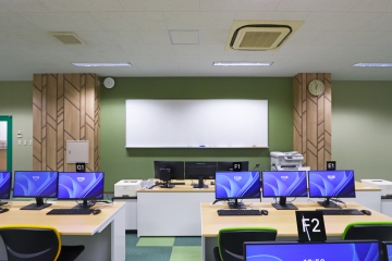 空間全体の統一感と機能性により、学生・教員の皆様にとって親しみやすく、学びやすい教室が完成しました。
