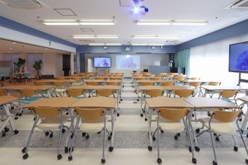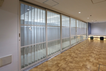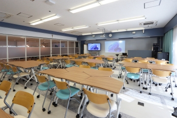旧コンピュータ室の壁を撤去して可動式間仕切りを設置したことで、教室と廊下を1つの大空間としても、2つの独立したスペースとしても活用できます。